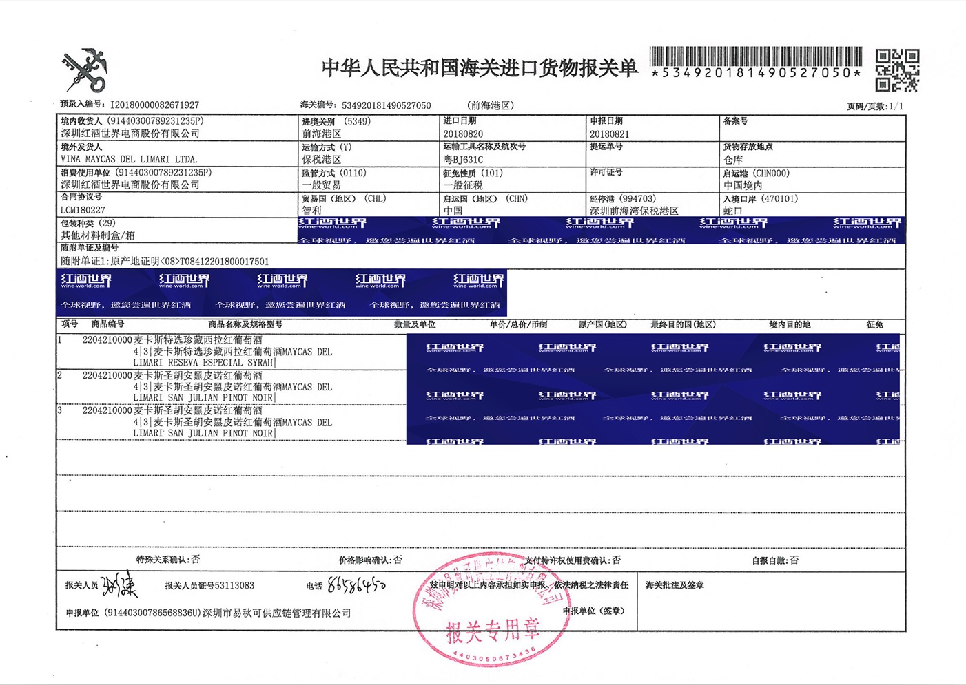 2015年麦卡斯特选珍藏西拉红葡萄酒 (干露集团高端品牌)