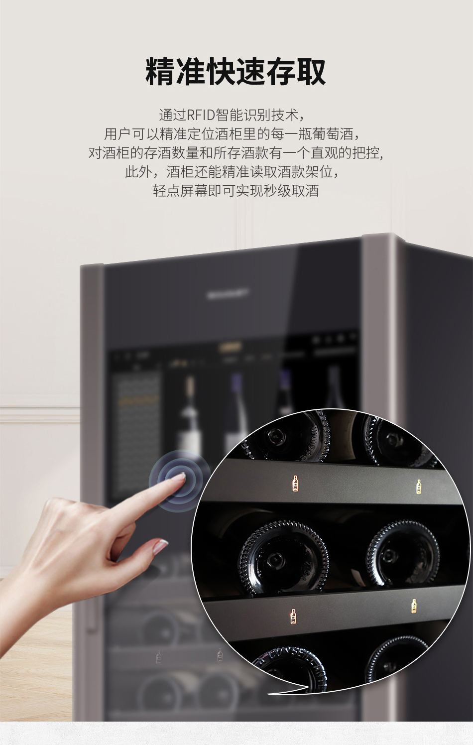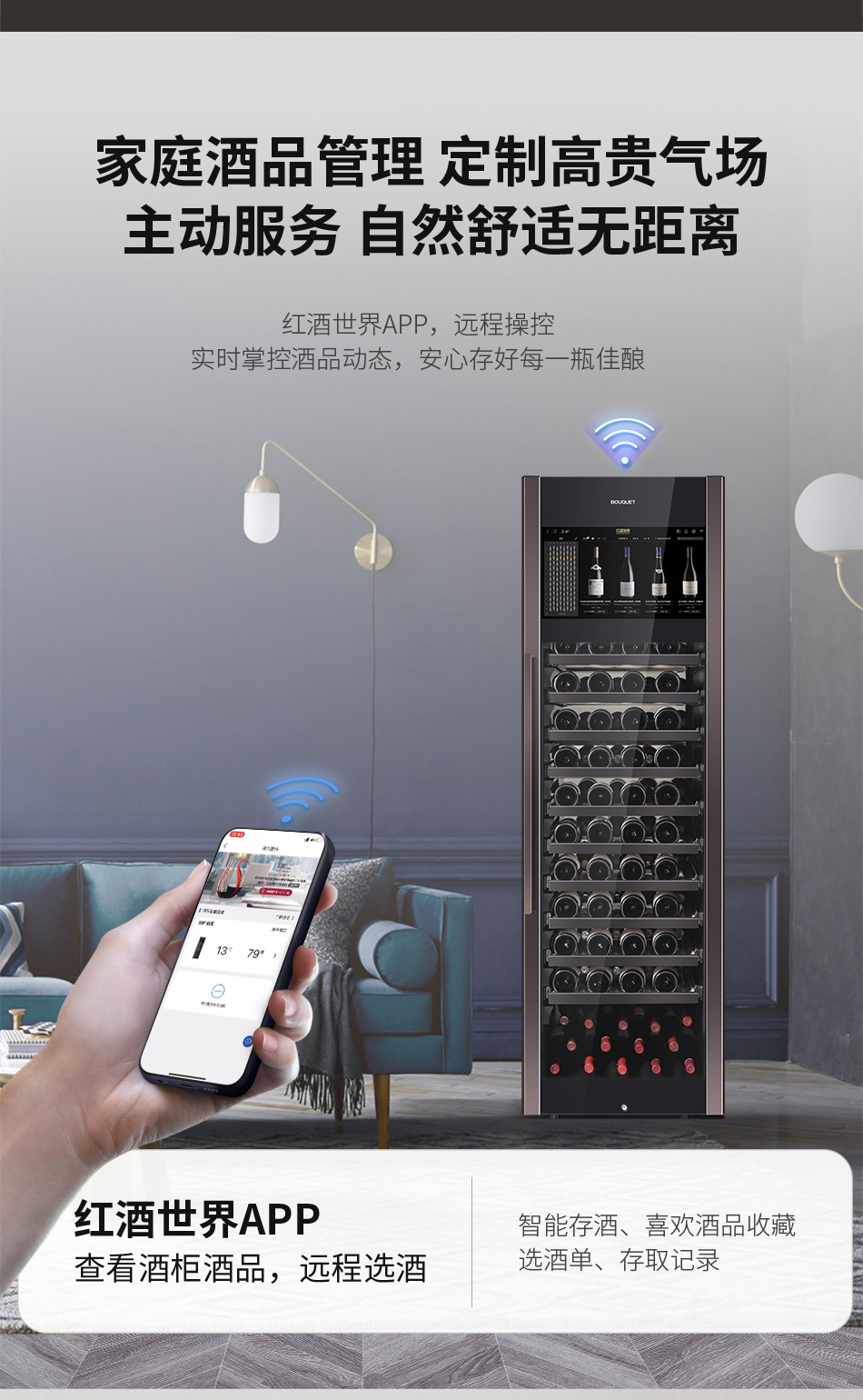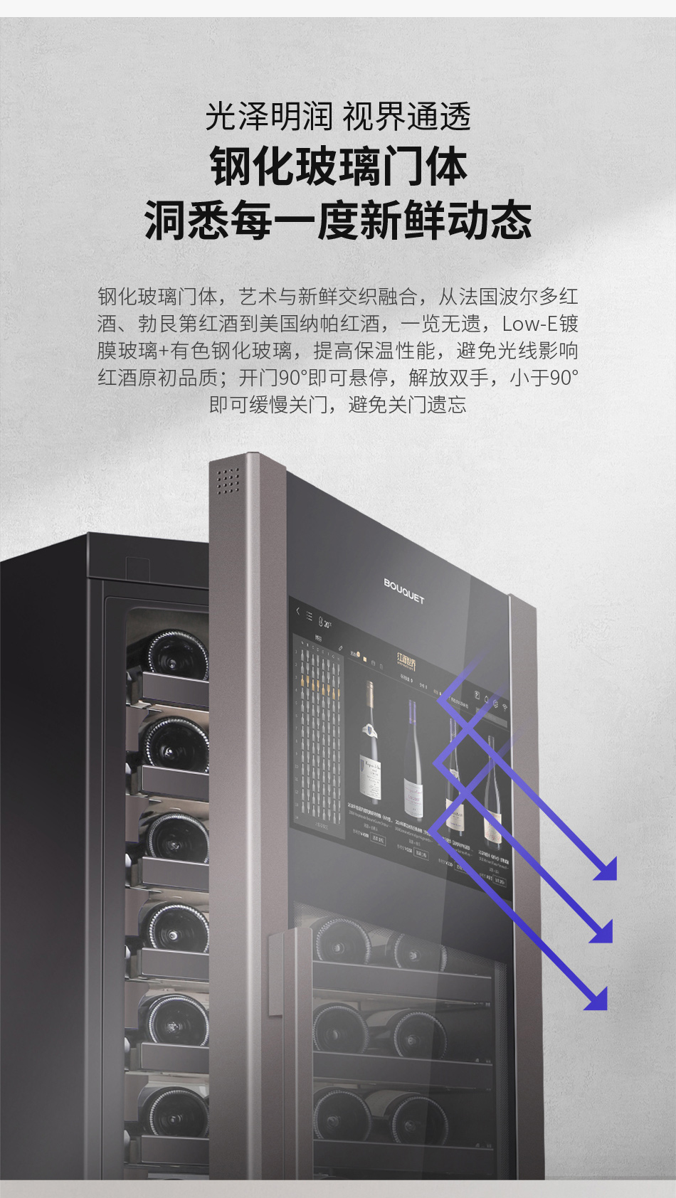 推荐质雅钢铂灰,彰显内敛持重的家居美学;21.5吋智能大屏,一站式专业储酒;Low-E镀膜玻璃+有色钢化玻璃,提高保温性能及降低紫外线照射;90°悬停技术,解放您的双手;大容量设计,最多可储藏138瓶,13层智能识别酒架均可存放勃艮第瓶、香槟瓶及大容量异形瓶,是一款专为葡萄酒爱好者打造的高端五维智能酒柜——酒款智能识别、精准快捷存取、大屏酒款详情、手机远程双控、全球名庄一键到家。